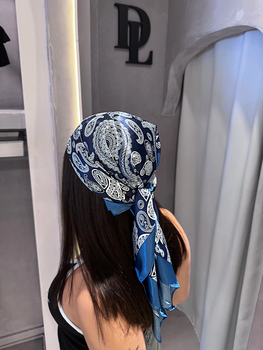 Podés usarlo en la cabeza tipo bandana, como top anudado, en la cintura a modo de cinto, en la cartera para darle onda o incluso al cuello para un detalle más clásico. Su tamaño permite hacer distintos nudos y ajustes sin perder firmeza, y los bordes suavemente terminados evitan que se enrosque o deforme.