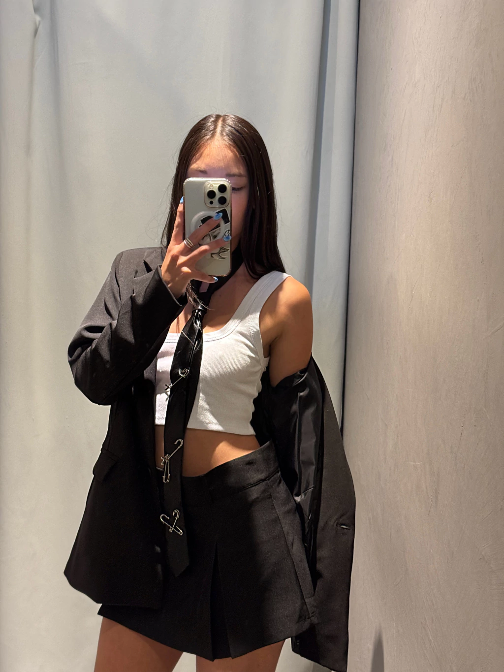 El básico que no es tan básico. Este top blanco de corte recto y fit ajustado se convierte en tu mejor aliado para looks de día y de noche.