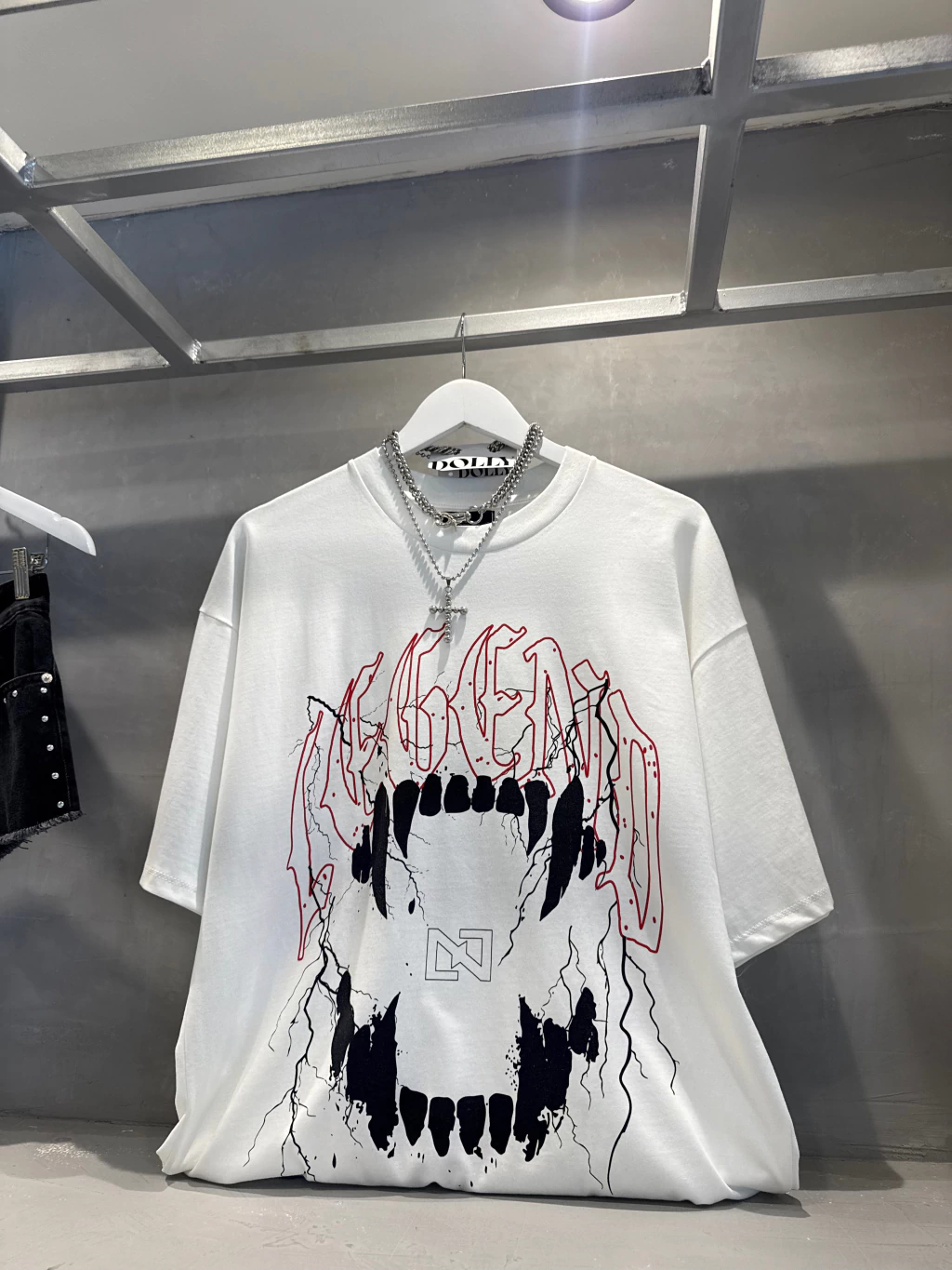 El remerón que marca actitud. Confeccionado en algodón premium, tiene un calce oversize que lo hace cómodo y canchero. Su estampa frontal LEGEND con diseño gráfico de alto impacto le da ese toque rebelde y street que define los looks más potentes de Dolly.