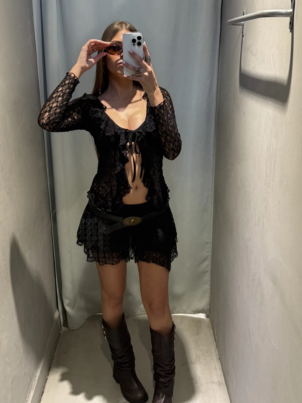 La pollera de encaje con volados que estabas esperando. Este diseño cuenta con cintura elástica para un ajuste cómodo, y un short interior que la hace perfecta para cualquier ocasión. Su estilo versátil combina fácilmente con diferentes prendas, permitiéndote lucir canchera y a la moda en todo momento. Ideal para un look veraniego o una salida nocturna.