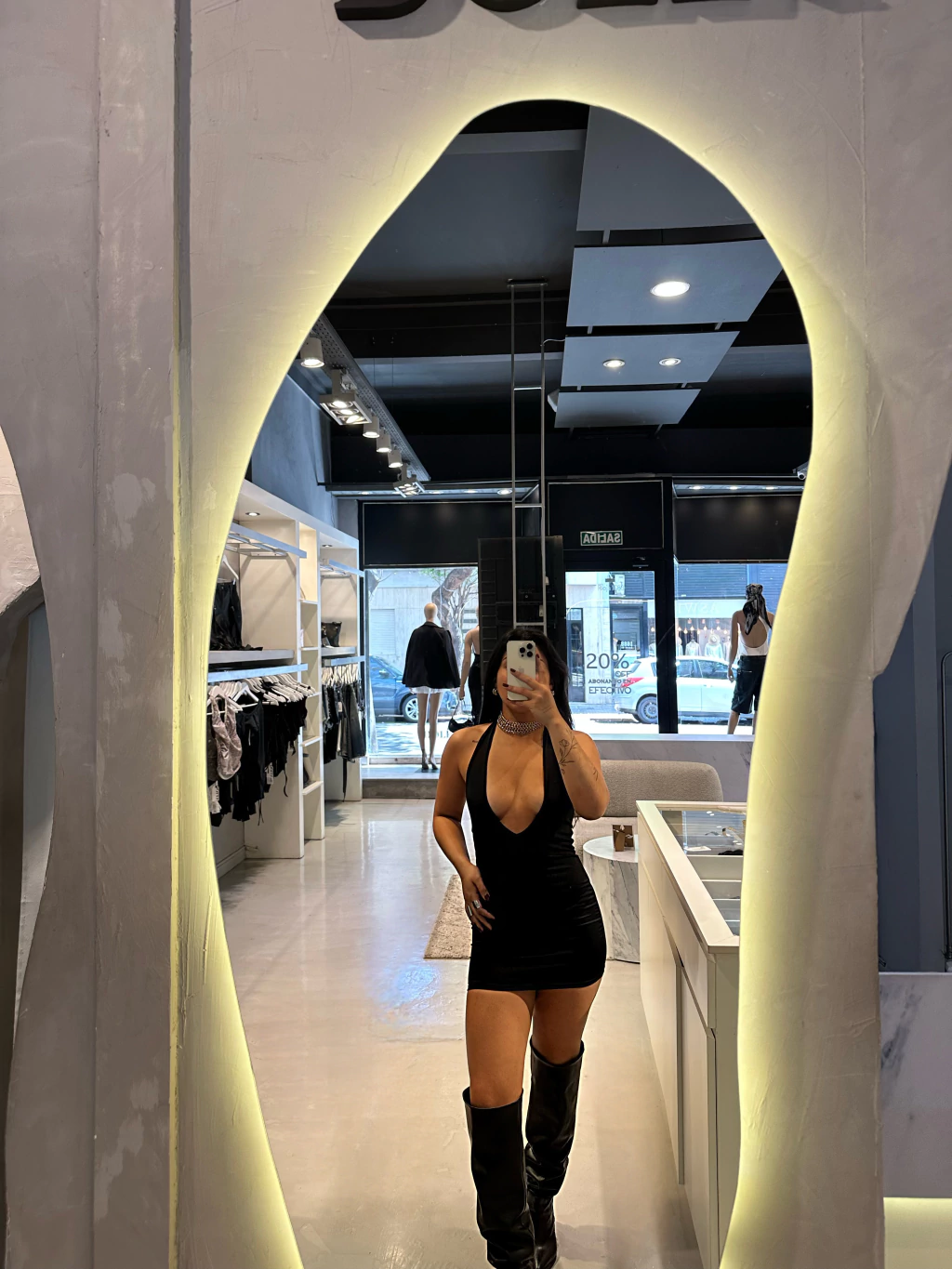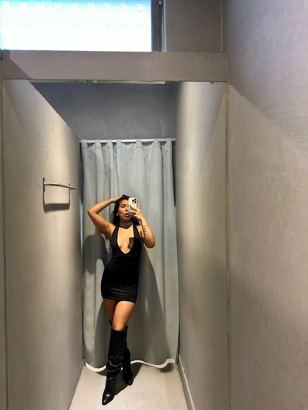 Este vestido negro corto es el básico que nunca falla pero con toda la actitud. Confeccionado en lycra suave, elastizada y súper cómoda, se adapta al cuerpo con un calce entallado que realza la figura sin perder movilidad ni confort.