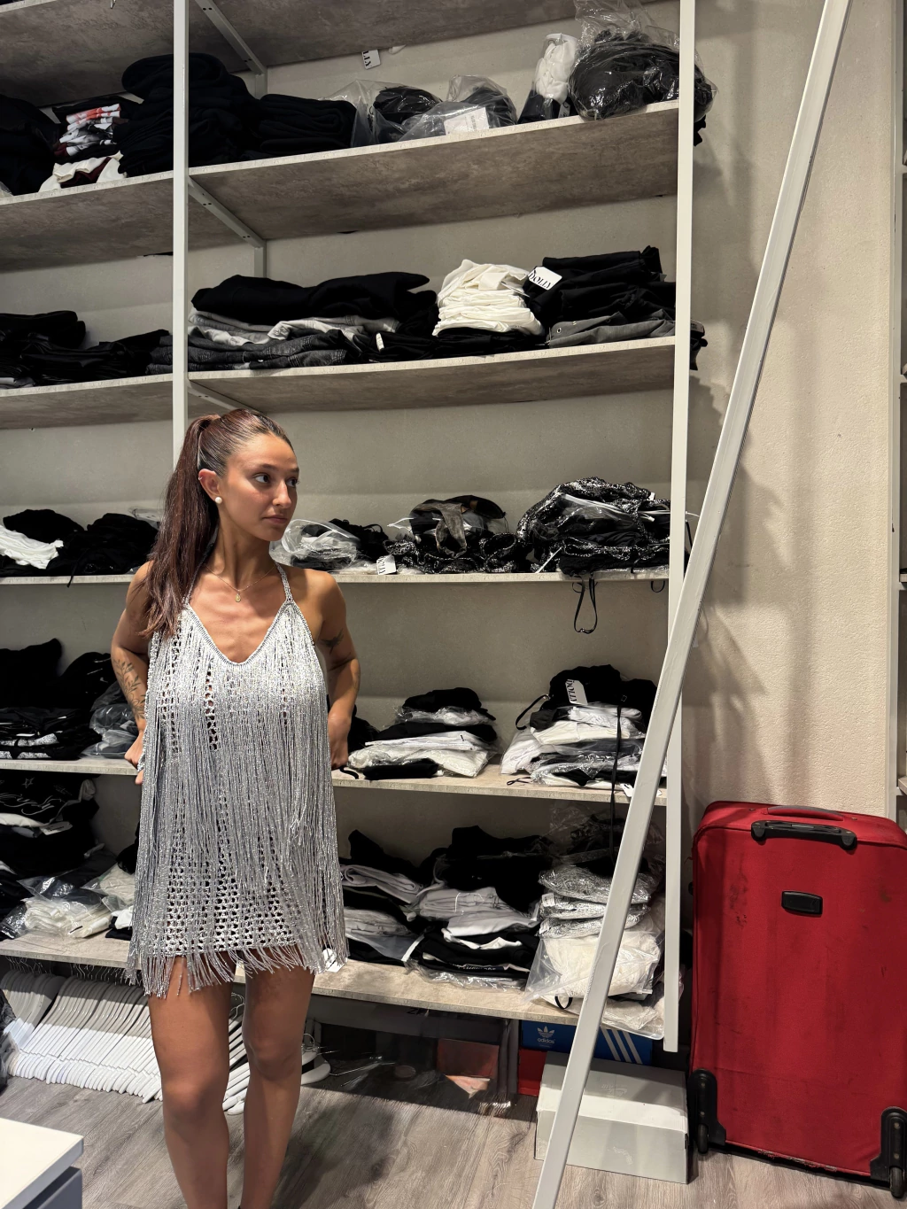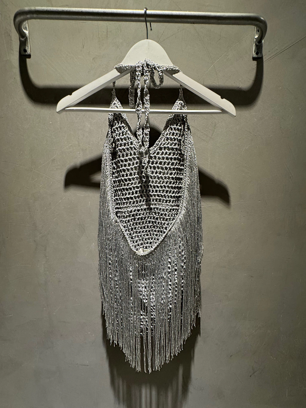 Vestido tejido con flecos en tono plateado, super llamativo y original. Tiene un diseño suelto con tiras finas y escote en V, ideal para usar sobre prendas básicas o como protagonista total del look. Su textura tejida y los flecos aportan un movimiento único y un brillo delicado que lo hace perfecto para eventos o salidas especiales. Liviano, cómodo y lleno de estilo.