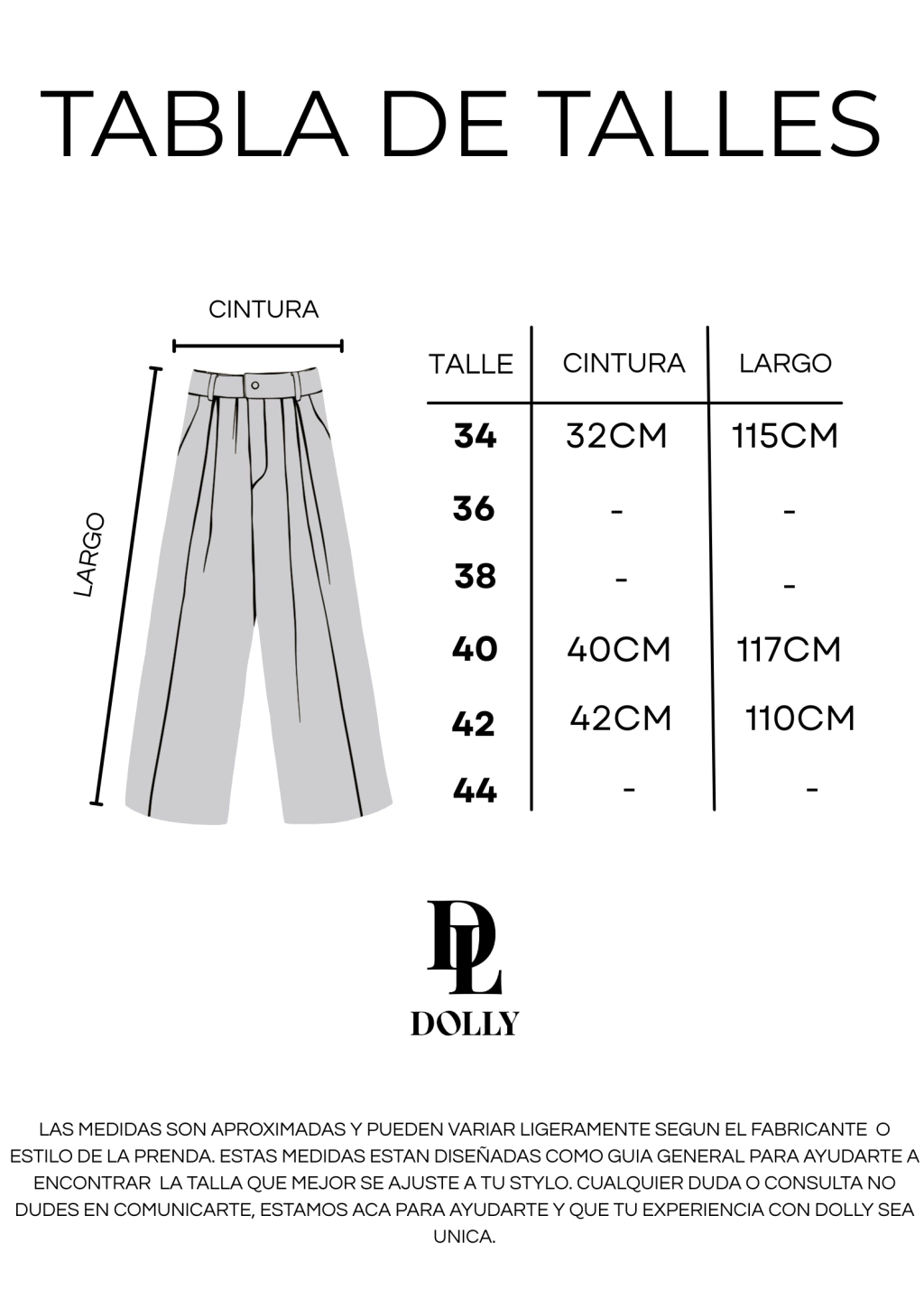Talle 34= Ancho: 32cm/ Largo: 115cm